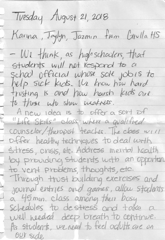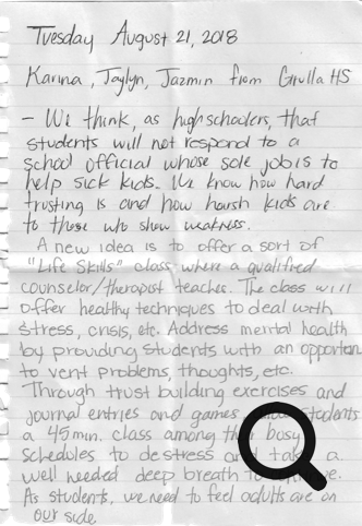 Written at the moment by Karina during the visit in which the term Life Skills Counselor emerged.