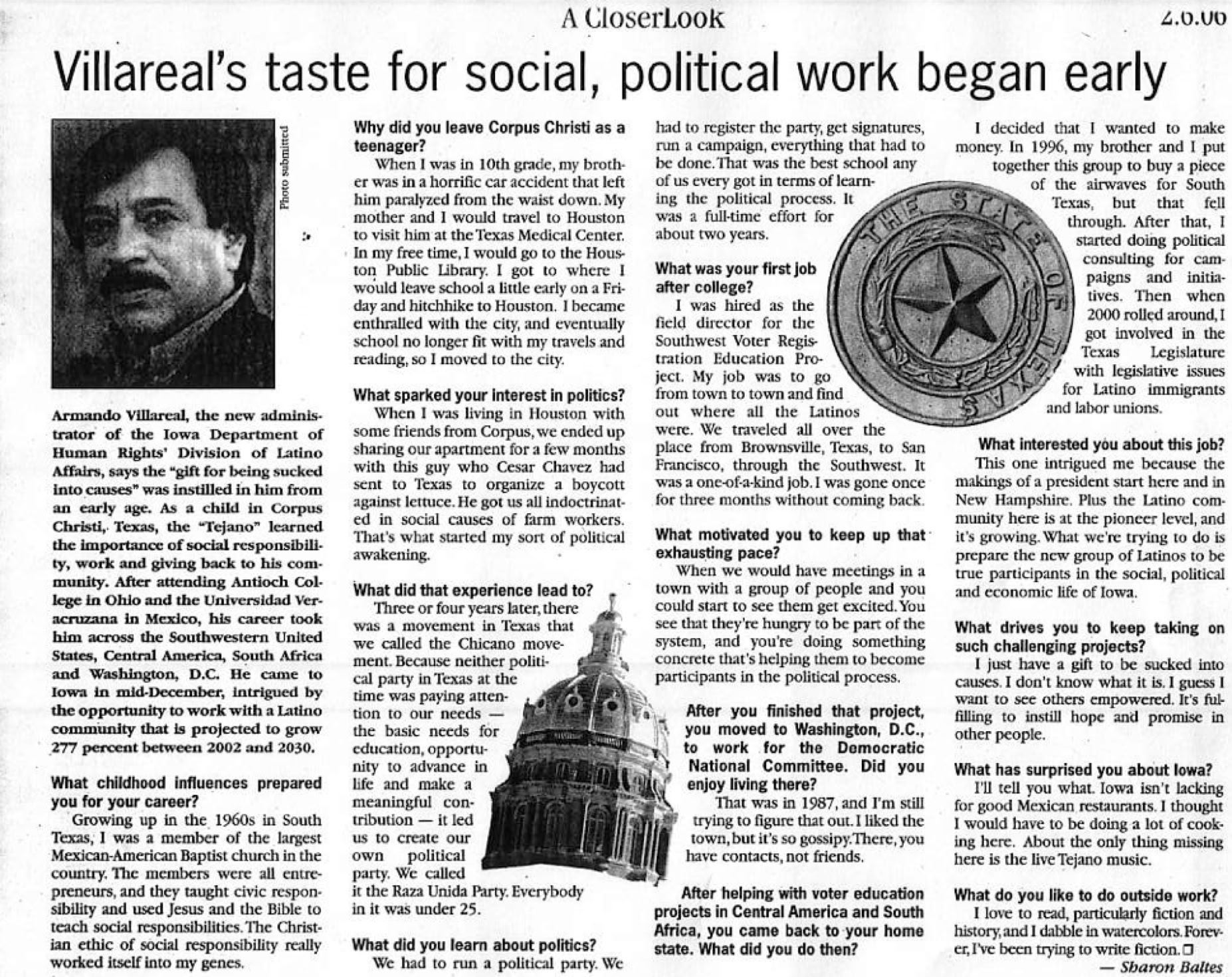 In 2005 then Iowa Governor Tom Vilsack appointed Armando to head the state’s Division of Latino Affairs. There he organized the Iowa Youth Congress, and other initiatives.