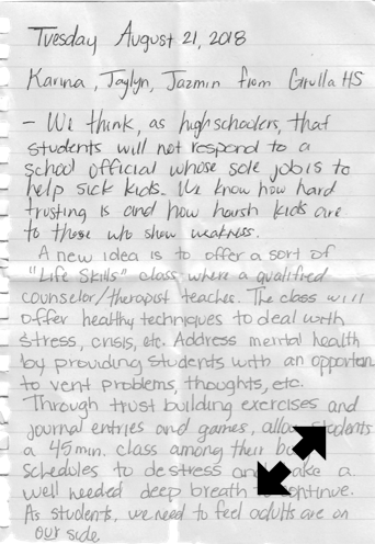 Proposes: A pilot program in fourteen high schools to include in each one special school counselor to work with ISD administration, certified therapists, mental health and social service professionals, and law enforcement authorities. The counselor would work with students who require specific attention to ease and relax tension.
